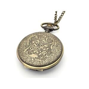 Wear it as a necklace, pocket watch, or keychain. Watch is just under 2 inches in diameter. Solid metal construction with a vintage bronze finish. Quartz movement, battery operated. New battery is pre-installed, so no winding required.