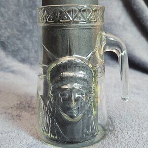 Large Heavy Glass Mugs with the Statue of Liberty Face on the Front