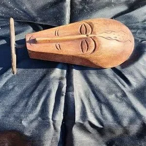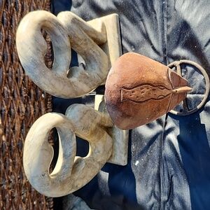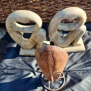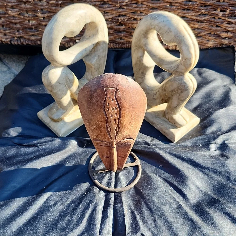 2 white-grayish marble statue female figures. 1 African wooden mask.