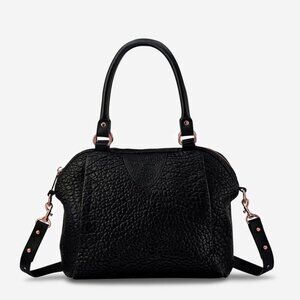 Status Anxiety Force of Being Black Leather Handbag with Rose Gold Hardware
