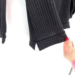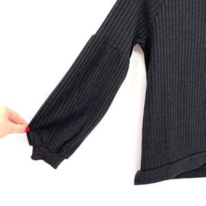 Status By Chenault Black Rib Knit Crewneck Lantern Sleeve Soft Top NWT Women XS