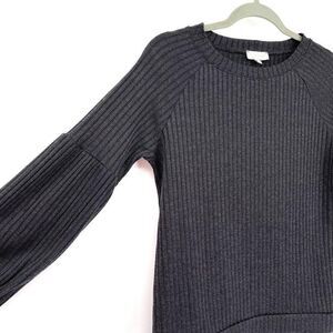 New with tag. Status by Chenault rib knit crewneck top. Has bracelet length lantern sleeves and side slits. Very soft material. Color: Black. Size: Women's XS. Smoke free home.