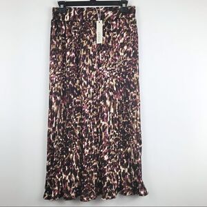 New with tags Status By Chenault Wine Camo Accordion Pleat Long Skirt with Elastic Waist