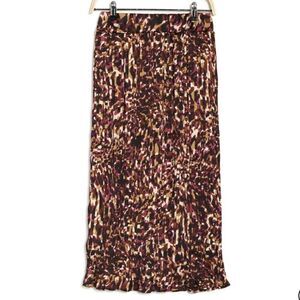 Status By Chenault Wine Camo Accordion Pleat Long Skirt with Elastic Waist NEW