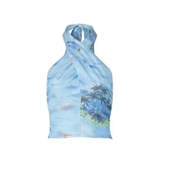 Staud $145 Blue Kai Crepe Cropped Halter Top Size 8