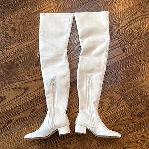 Staud Aimee Vegan Stretch Leather Over the Knee OTK Boots White