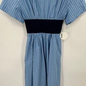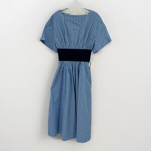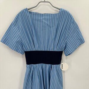 Staud Amy Midi Dress in Azure Blue Pinstripe size M Medium Cotton Fit and Flare