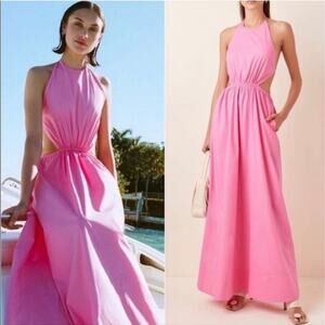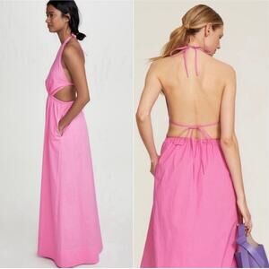 Staud Apfel Pink Halter Open Back Maxi Dress - Tie Back Halter Dress Size XS