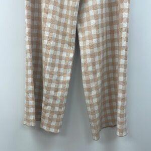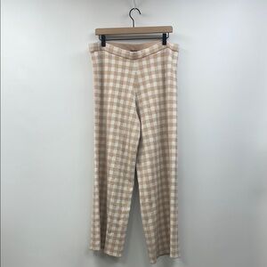 Staud Avalanche Gingham Plaid Knit High Rise Pull On Wide Leg Pants Tan XL
