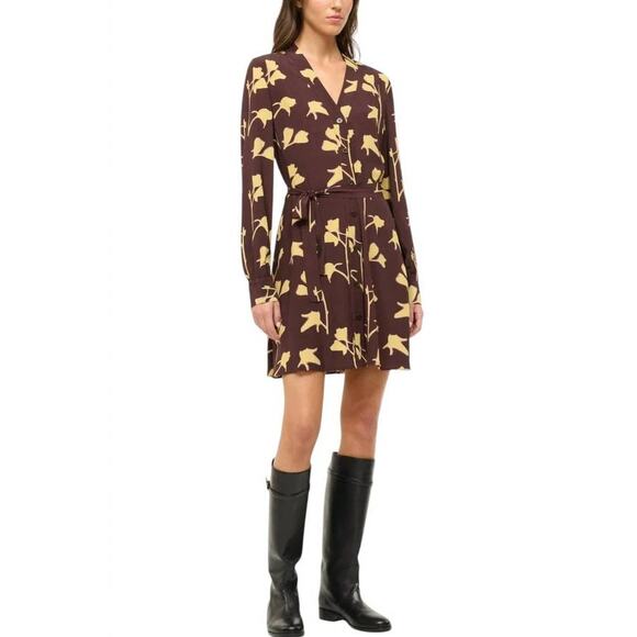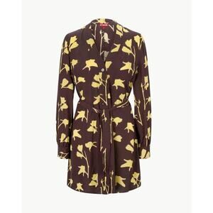 Staud Babs Flora Tie-Waist Shirt Dress in Earth Pressed Floral XS