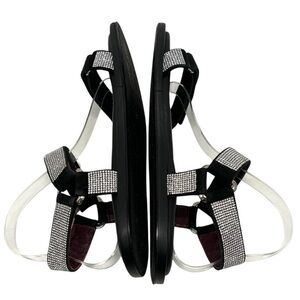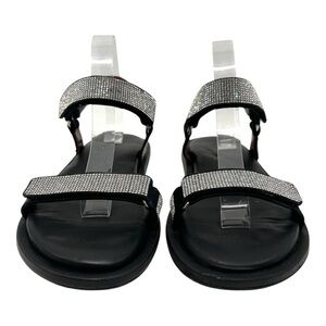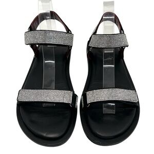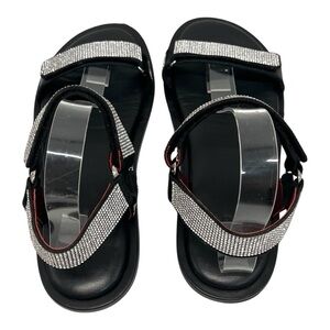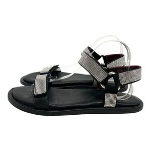 Staud Betty Rhinestone Black Leather Sporty Outdoor Sandals Womens 40
