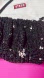 • Materials: black glass beads, rhinestones, leather strap, satin lining, silver-tone hardware