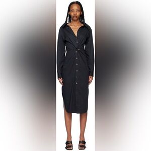 Staud Black Clea Midi Black Shirt Twist Dress Size 2