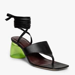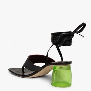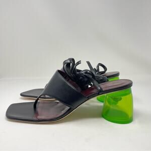 Staud Black Leather Sandals Green Lucite Heel Strappy 11.5