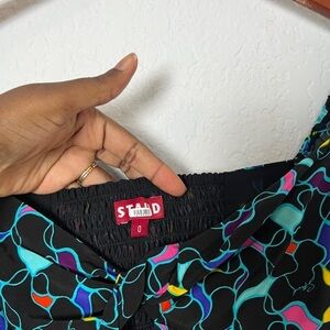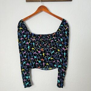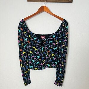 Staud Black Multicolor Print Long Sleeve Sweetheart Neck Josephine Top