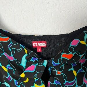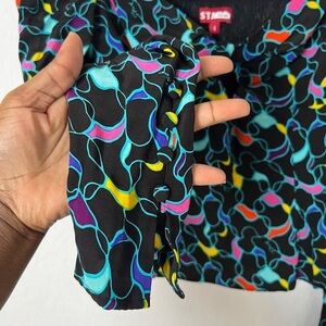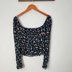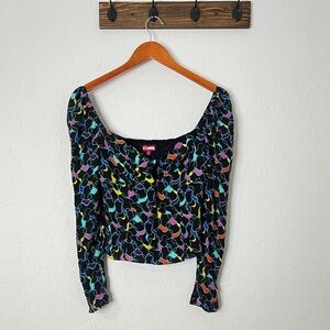 Staud Black Multicolor Print Long Sleeve Sweetheart Neck Josephine Top