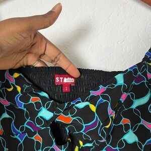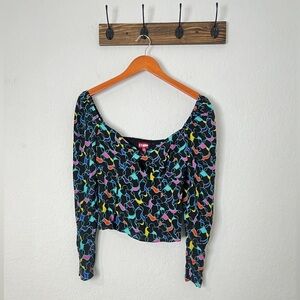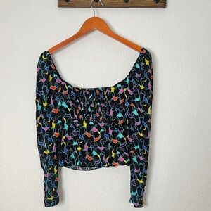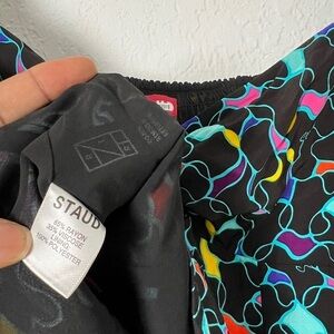 Staud Black Multicolor Print Long Sleeve Sweetheart Neck Josephine Top