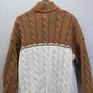 Brown/white knit (60% Cotton, 40% Acrylic). Sweater. Quarter zip. Long sleeves. Front zipper closure. 29" from shoulder to hemline.pit to pit 26