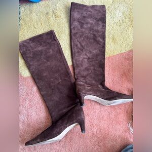 Step out in style with these elegant brown suede knee-high boots. Perfect for any occasion, these boots offer both comfort and sophistication.