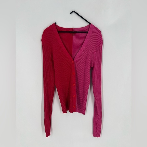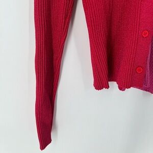 Staud Cargo Two Tone Rib Knit Metallic Sweater Cardigan In Lava & Peony