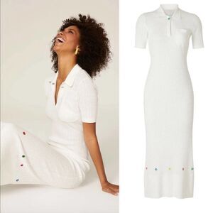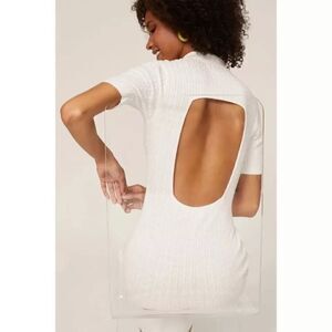 Staud Cecily Knit Midi White Dress Corton Cable Open Back Size XS
