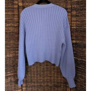 Staud Chunky Knit Cardigan Sweater Balloon Sleeve Purple Preppy Cottagecore Y2K