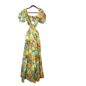Staud Coliseum Tropical Printed Linen Cutout Maxi Dress Size 2