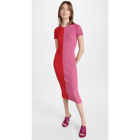 Staud Colleen Two-Tone Ribbed Knit Dress in Lollipop Size M
