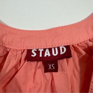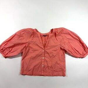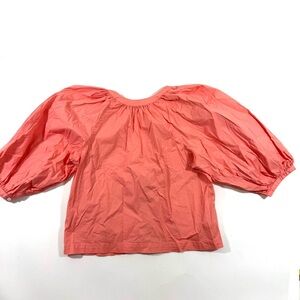 Staud Dill Poplin V Neck Top Coral Blouse Size XS Balloon Sleeve