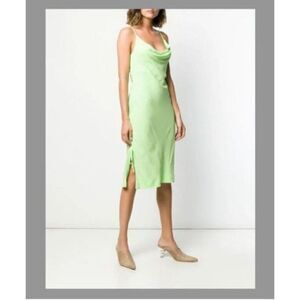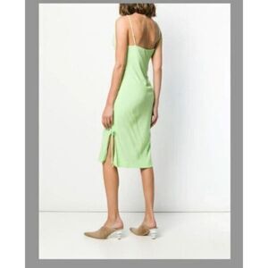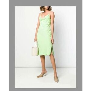 This stunning lime green Staud dress is a must-have for any wardrobe. The dress features a versatile convertible design that allows it to be worn as a mini or midi dress, making it perfect for any occasion. The dress is made from high-quality materials and features a solid pattern, sleeveless design, and V-neckline. It also has a pullover closure and a bodycon style that flatters the wearer's figure. This dress is ideal for women who love fashion, and it is perfect for those who want to look stylish and chic.