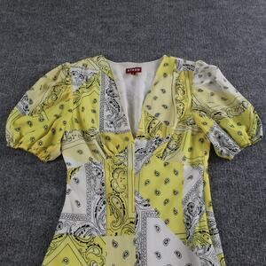 Staud Dress Womens 2 Yellow White Bandana Patchwork Short Sleeve V Neck Lined