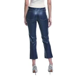 Staud Elliot Blue Vegan Leather High Rise Cropped Flared Casual Pants Size 00