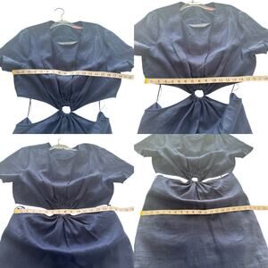 Staud Epona Sheath Dress Large Ring Detail Short Sleeve Cutout Linen Mini Navy L