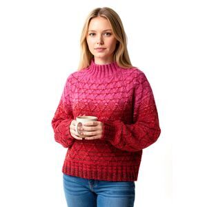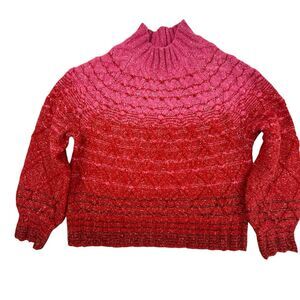 Pink and red Ombre, heavy knit sweater with a mock neck.