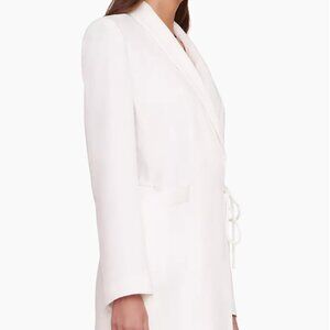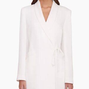 Cut in a wrap silhouette, STAUD's long-sleeve Everly minidress boasts blazer-inspired styling with shawl lapels. The self-tie style is finished with crystal-embellished button closures at the sleeve cuffs.