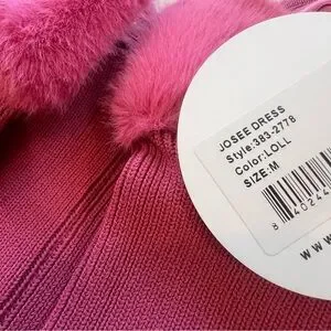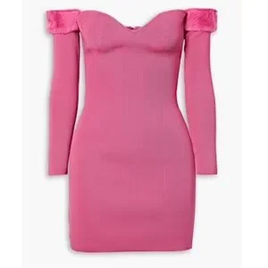 Staud Josee Fur Trimmed Long Sleeve Pink Mini Dress , NEW