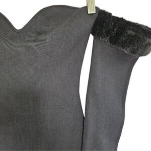 Staud Josee Knitted Mini Dress Staud Black Faux Fur Trim Size M NWT Event