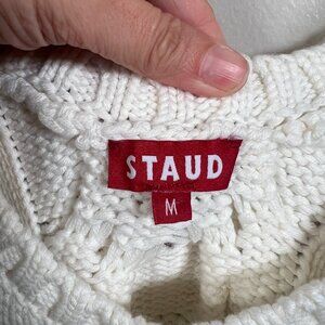 Staud Kind Cable Knit Sweater Vest Size Medium Chunky Cropped White Preppy