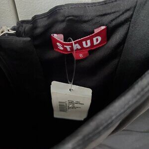 Brand new with tags Staud Lotus dress. It has a corset style front, cap sleeves. Zipper in the back. Hard to describe the material -its almost utility, but its really cool. Doesnt fit me, unfortunately. US 8