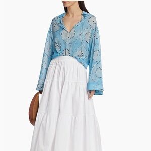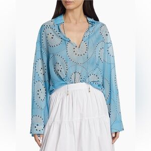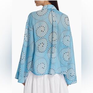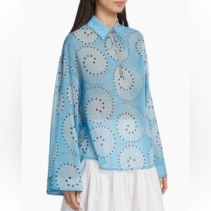 STAUD's Marissa shirt showcases a swirling print pattern and spread collar with ties.