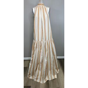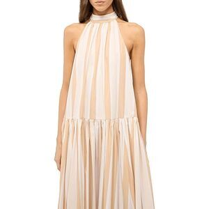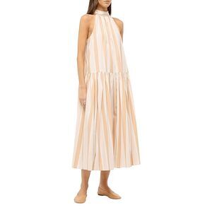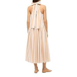 Staud's Marlowe dress is crafted of contrast striped stretch cotton with a halterneck and full skirt.