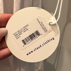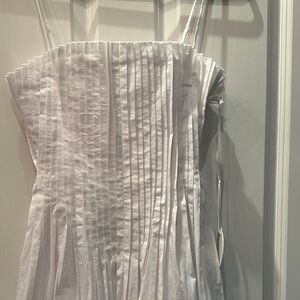 Chic Staud white dress with pleated design. Perfect for any occasion. Brand new with tags.