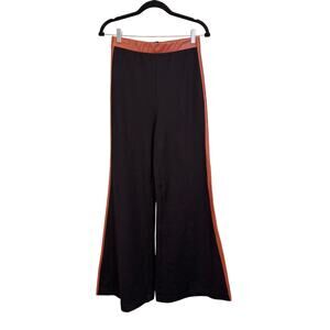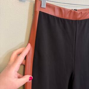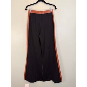 Staud Milo Flared Pants Womens M High Rise Leather Contrasting Trim Brown Black