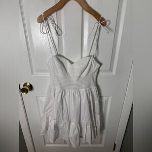 STAUD's Landry minidress features a bustier-style smocked bodice with delicate tie-shoulder straps. This style features a full A-line skirt with a gathered hem.