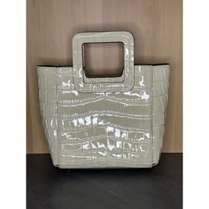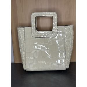 Staud Mini Shirley Handbag Ivory Croc Embossed Detached Strap