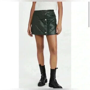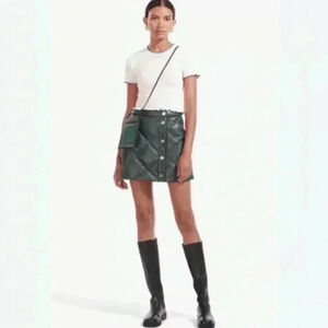 Staud Mini Skirt 6 Quilted Puff Faux Vegan Leather Green Snap Front Dice New S