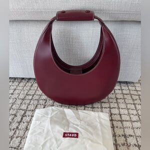 Our crescent Moon Bag in this season's freshest colors. The Moon Bag features a curved handle with a removable STAUD-embossed accent, suede lining, and magnetic clasp closure to hold all your essentials.