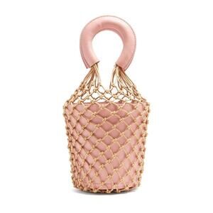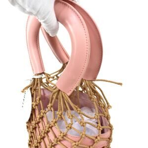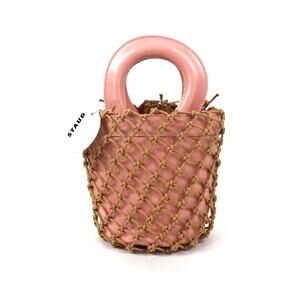 Staud Moreau Macrame Bucket Bag NEW Pink Tan Net Leather Handbag Open Top