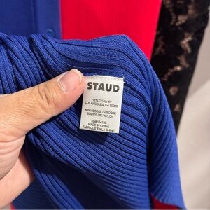 Staud NWT Medium Blue Red New York Giants Shoko Knit Button-Up Sweater Dress NFL
