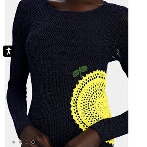 slinky knit midi dress with slip included. navy with crochet lemons.